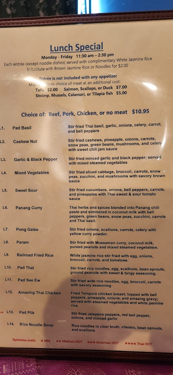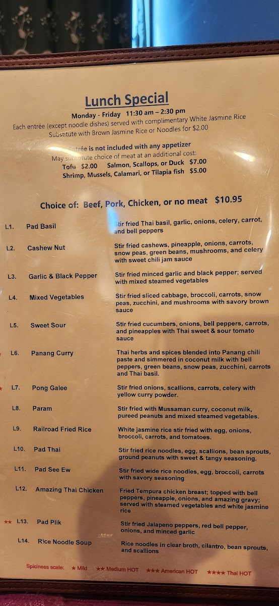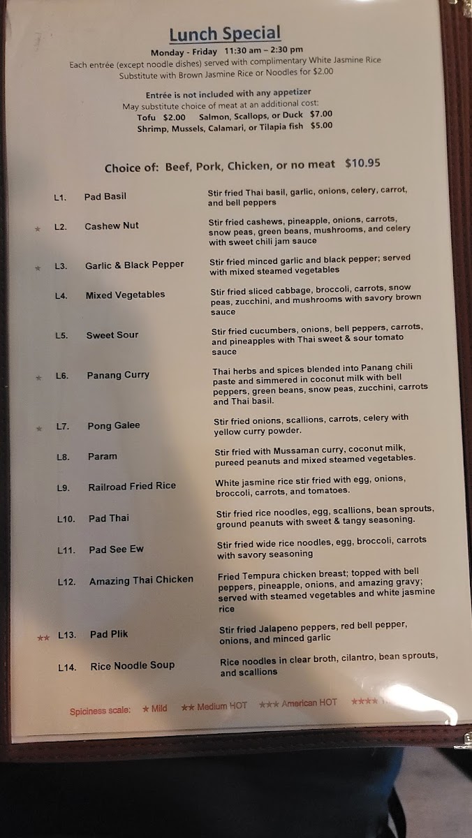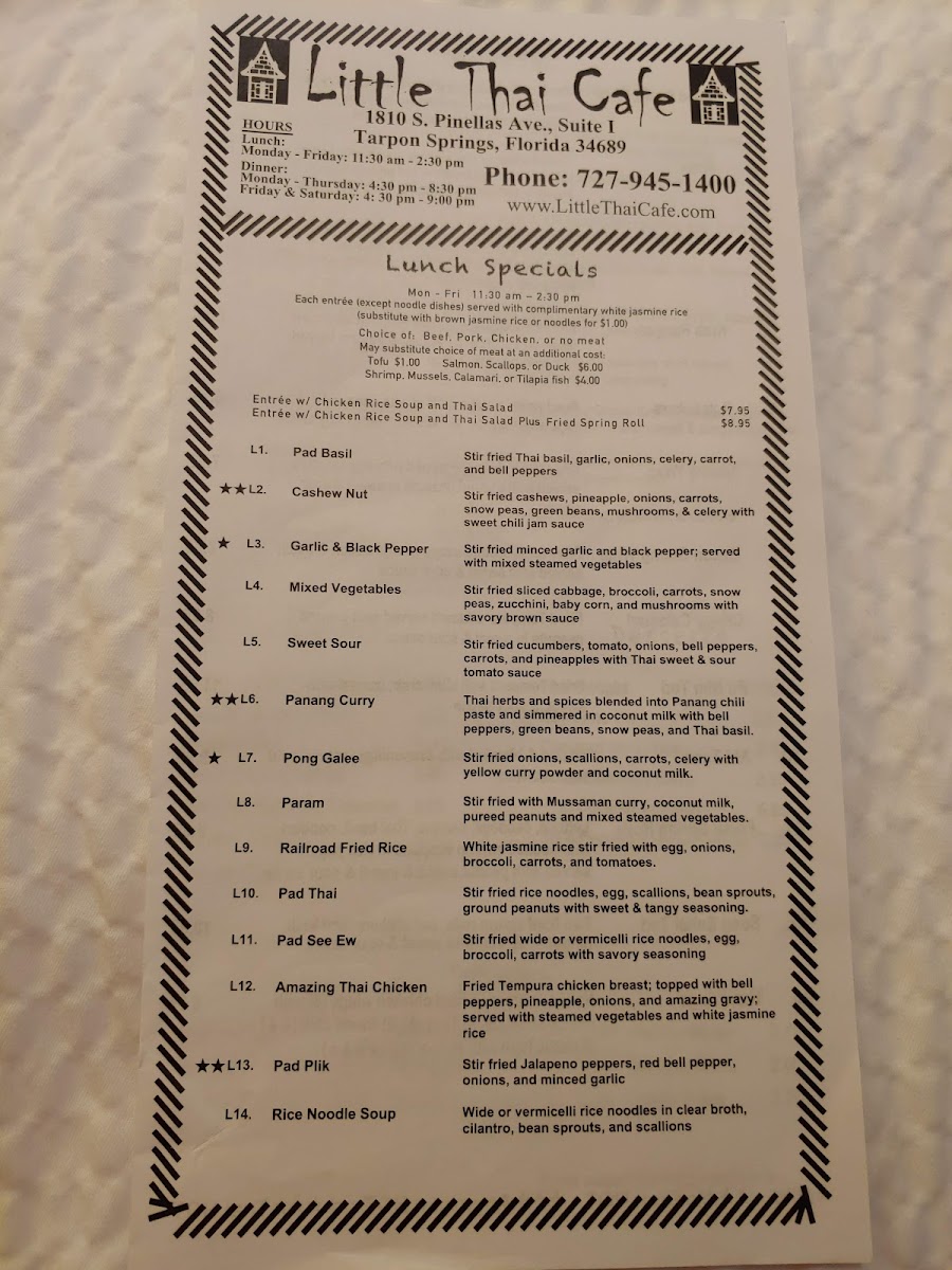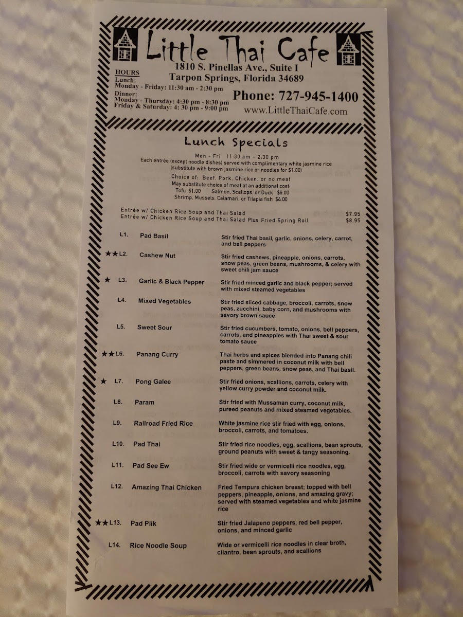 If you’re curious about what’s cooking at 1810 S Pinellas Ave # I in Tarpon Springs, the Little Thai Cafe Menu is where the real adventure begins. It’s the kind of lineup that makes you pause for a second because everything sounds good. You’ll spot familiar Thai favorites like Pad Thai and Drunken Noodles, but there’s more than just the classics. From rich, creamy curries layered with coconut milk to bright, citrusy soups that wake up your taste buds, every section feels thoughtfully put together.